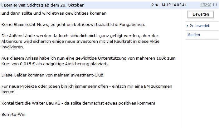 Wie Du schon sagtest, der Umsatz. Über 30 Millionen gehandelte Aktien. Nun ja Zocker würden ja auch auf Kronkorken, Glasperlen oder 3 Tage altes Hund-AA wetten, Hauptsache es findet sich ein Blöder, der die Story glaubt. Zugegeben echte Stories sind extrem selten, aber eben nicht völlig ausgeschlossen.