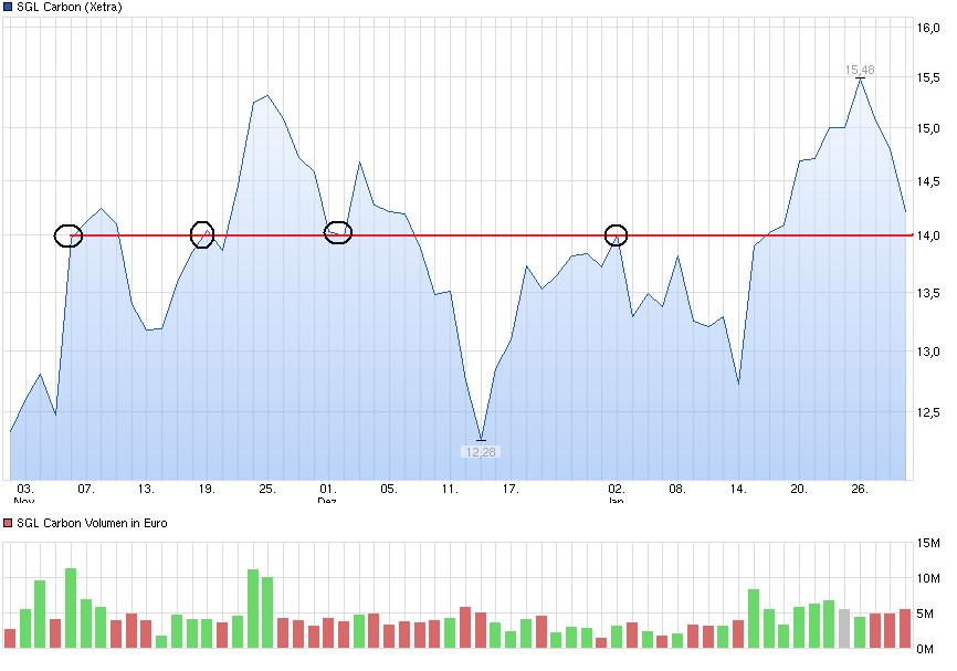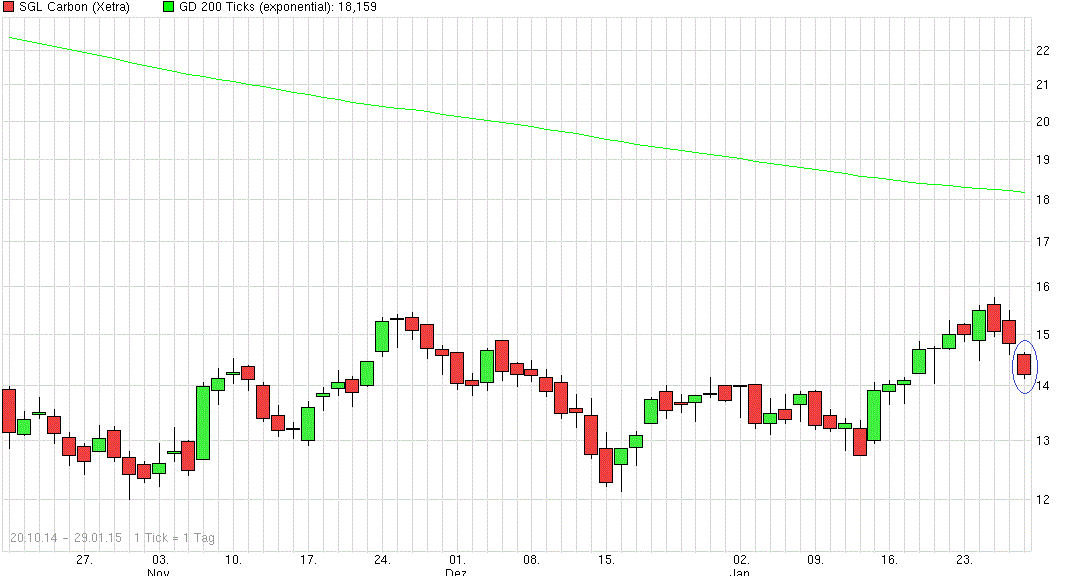 Fazit: alles im grünen Bereich und für SGL-Verhältnisse normal. Wer das als unnor-mal empfindet, wer die Nerven nicht dafür hat, dem rate ich auszusteigen. Ich bleibe, das steht fest. Sobald der Kurs sein Tief erreicht hat, lege ich einen Turbo zu meinen Aktien und surfe damit die Erholung ab. Das gibt mein Urlaubsgeld.