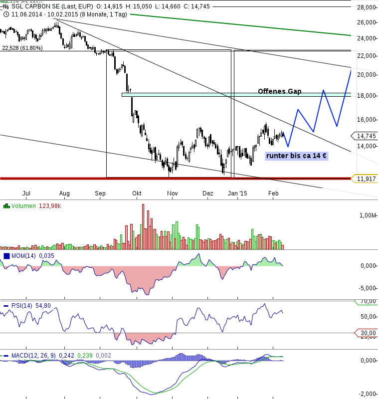 Erfahrungsgemäß macht derjenige das meiste Geld mit einer Aktie, der einsteigt, wenn sie keiner (mehr) haben will. Diesen Punkt scheinen wir bereits überschritten zu haben. Jedenfalls ist dann, wenn der SGL-Kurs ruhig seine Bahnen zieht, die Katz bereits den Baum rauf.