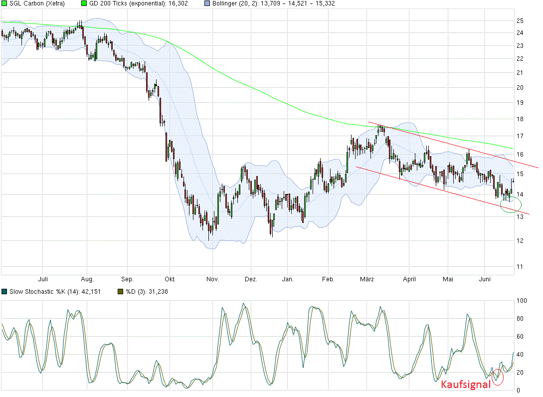 Würde der Kurs auf 12,- Euro sacken, müsste auf jeden Fall abgewartet werden, ob der Break erfolgt, oder ob die Unterstützung hält und ein Pullback ggf. nachhaltig ist. Das würde Käufe direkt auf der Unterstützungslinie ausschließen.
