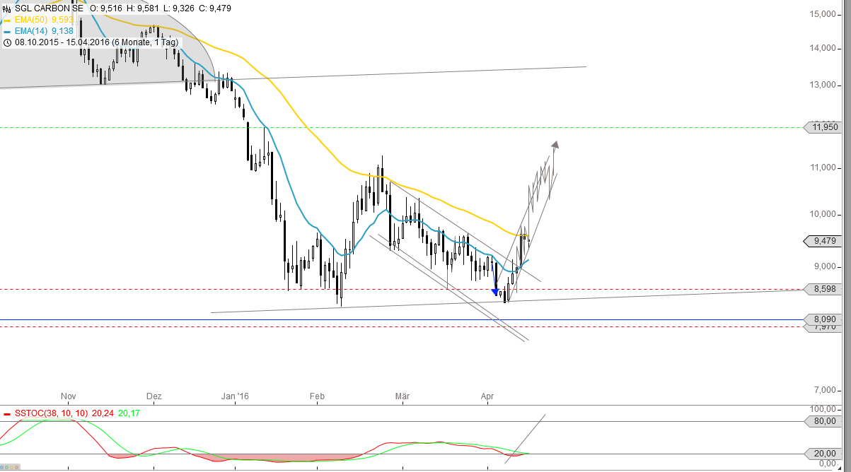 Bleibt zu hoffen, dass die Nachrichten von der "Stahlfront" jetzt, nach den Vereinba-rungen mit den Chinesen, wieder nachhaltig positiver werden, was sämtlichen Stahlwerten Flügel verleihen dürfte. Die Basiswerte schreien geradezu nach einer Stahlspekulation, denn die meisten notieren in der Nähe ihrer 10-Jahrestiefs. Auch SGL.
