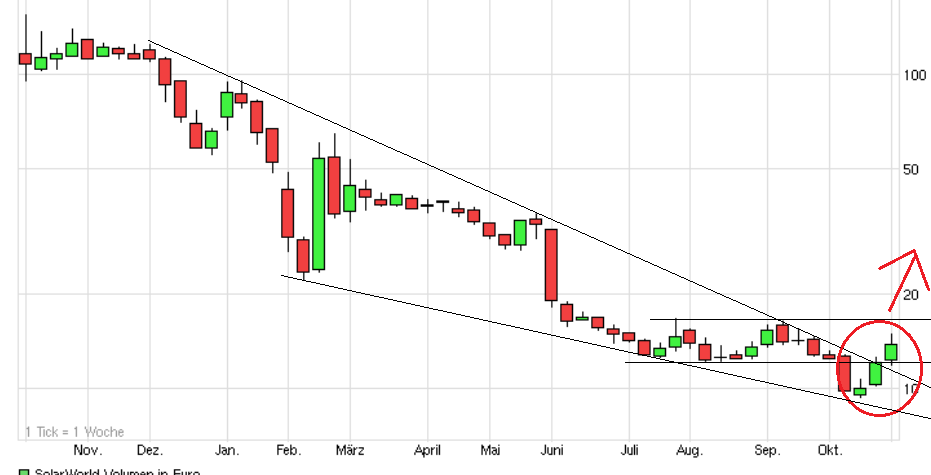 jedenfalls hab ich vom Fall von 12 bis 9,50 nichts mitgemacht und bin auch ncht bei 9,50 rein, weil ich mir geschworen habe, erstmal dieses Charttechnische Kaufsingal abzuwarten, dafür dann aber auf der sicheren Seite zu sein. Deswegen auch kein Kauf bei 12,50, da wieder der doppelte widerstand, also weiter abwarten. Die vorläufgen Zahlen haben mich dann zeitlich überrumpelt (wurden die angekündigt oder kamen die einfach so?), aber meine mehrfach angekündigte spekulation (guter Absatz in Q3) ist eingetroffen. Leider hatt ich nicht davon. Ich hätte n Stopp Buy setzen sollen bei 12,70 oder so. aber naja. Bin froh seit heute morgen wieder mit dabei zu sein und wünschen alle gute Kurse. Für ein beseitigen meiner Zweifel wäre ich dankbar.