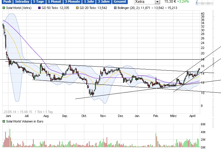 Die aktuellen exportzahlen aus china, -15% in März, geben diesen sachverhalt anschaulich wieder. Wird peking mit zinssenkung gegensteuern? Ich denke nicht, zumindest nicht signifikant. Es ist zu viel geld an der börse, gerade die technologie werte sind phänomenal überbewertet. solarworld gewinnt zusätzliche wettbewerbsfähigkeit ohne eigenes zutun. Ich glaube wirklich, dass hier ein turn-around gelingen kann. Die angst, den chinesischen wettbewerbern nicht gewachsen zu sein, die habe ich nicht.
