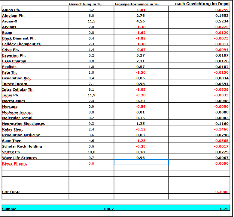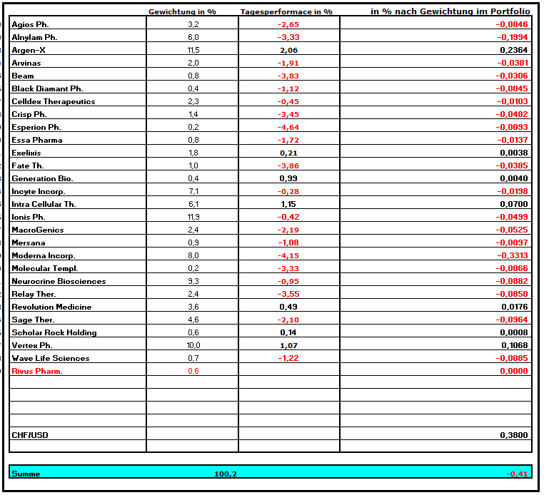 Die positiven Studienergebnisse von Argenx und der damit verbundene Kursanstieg haben den Wert des Portfolios nach meinen Berechnungen um 5,4% bzw. rund 157 Mio. $ steigen lassen. Damit ist Argenx auch zur größten Position im Bestand von BB Biotech aufgestiegen.