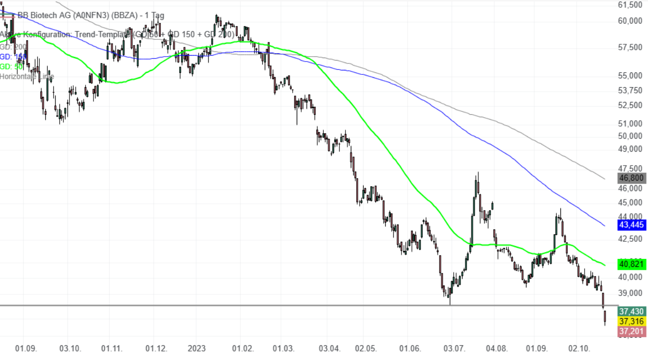 Ich denke, jetzt könnte hier eine günstige Gelegenheit sein, um BB Biotech Aktien zu kaufen. Das Premium ist nahezu Null. Mein Kursziel für einen Trade liegt bei ca. 48CHF.