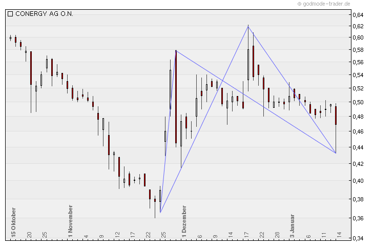 Zur zeit sehe ich in deinen chart eine SKS-Formation und anschließende leicht fallende tendenz.