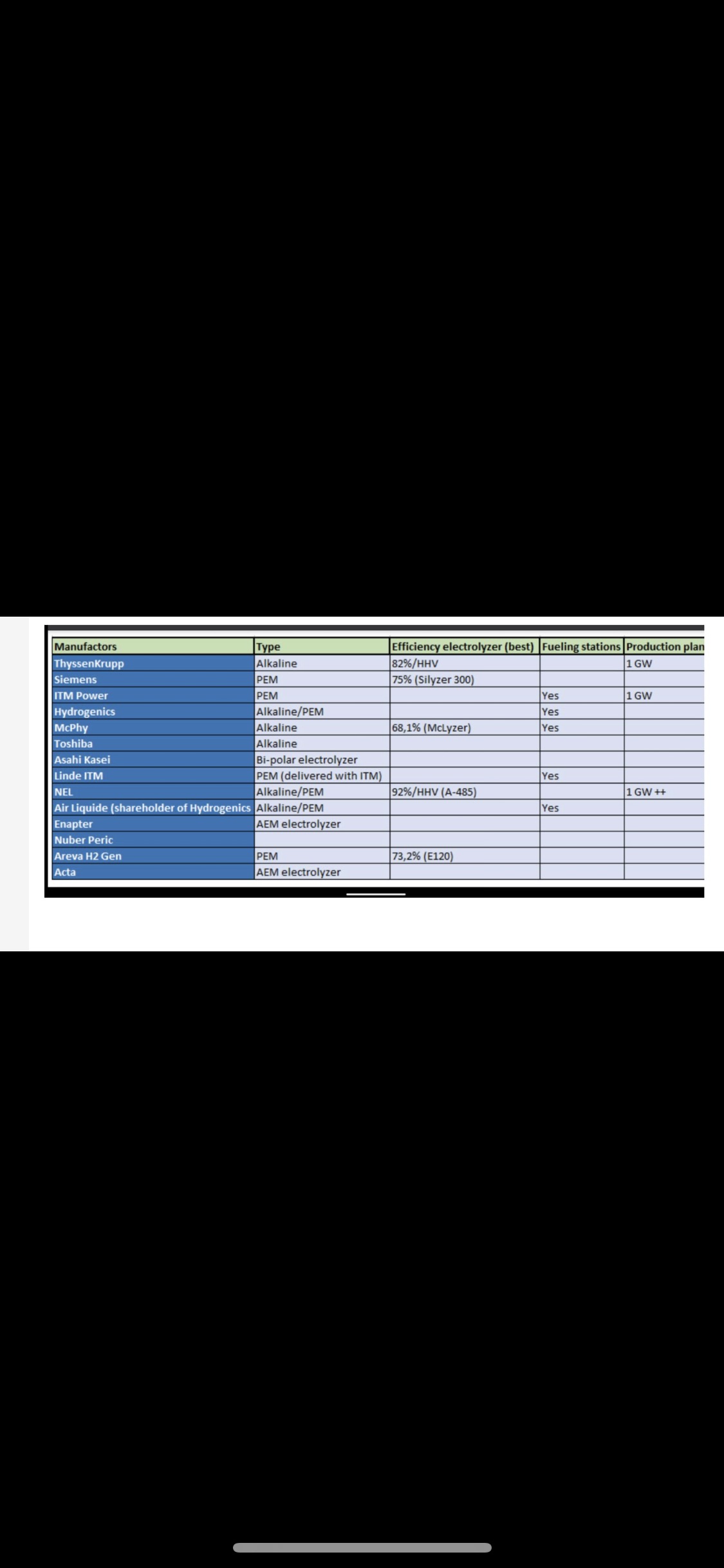 Vorteile NEL (meine Meinung): Ist die automatisierten Fertigungslinie, welche schöne Skaleneffekte (führt zu geringen Produktionskosten) hervorrufen kann. Außerdem produzieren Sie nachweislich die besten/effizientesten Alkalisysteme. Ein weiterer Vorteil ist, dass Nel ebenfalls die PEM-Systeme herstellt und somit ein Großteil des Marktes abdecken kann.