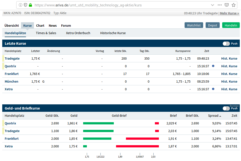 fest steht, Die Firma ist sehr klein, hat es trotzdem geschafft die größte im Einzelhandel funktionierende Bezahlplattform zu etablieren. Das ist schon eine Leistung die man anerkenne muss. Wenn das so einfach wäre, hätte es die Deutsche Bank gemacht. Nun wird das angebotene Plattform von der Kunden kaum benutzt. Das könnte man nicht wissen, da außerhalb Deutschlands das mobile Bezahlen sich größerer Beliebtheit erfreut. Letztes Jahr wurden ca. 1,5Millionen über die Plattform umgesetzt. Bei einer Umsatzbeteiligung zwischen 0,3 und 0,03% (leider unbekannt) kann sich jeder ausdenken, dass nicht viel in der UMT-Kasse fliest. Das kann sich natürlich schlagartig ändern, wenn man überlegt, das im EH 300Milliarden umgesetzt werden. Komme es in der nächsten Jahren zu einer 10% Anteil von mobiles Bezahlen, werden die Zahlen ganz anders aussehen. Da die Einzelhändler auch sehen, dass das mobile Bezahlen an Desinteresse stößt, kommen auch keine neue Abschlüsse zustande. Der Vorstand hat berichtet über diverse Gespräche mit Großunternehmen berichtet, zur Vertragsunterzeichnung ist aber nicht gekommen. Warum wohl, weil die Einzelhändler warten, dass die Kunden solche Lösungen nachfragen. Also ist UMT eine sehr heiße Wette auf der Siegeszug des mob. Bezahlen. Da die Neuaufträge nicht gekommen sind, versucht der Vorstand sich andere Betätigungsfelder zu suchen, deshalb sind die Apps und Personalvermittlung dazu gekommen. Ein Knaller werden sie bestimmt nicht, aber womöglich bringen sie was in der Kasse, bis das mob. Bez. anspringt. Ich sehe die Firma als nicht Insolvenzgefährdet, aber dicke Gewinne gibt's erst wenn das Mobile Bezahlen nachgefragt wird. Wie lange das dauert und ob überhaupt weis Niemand.