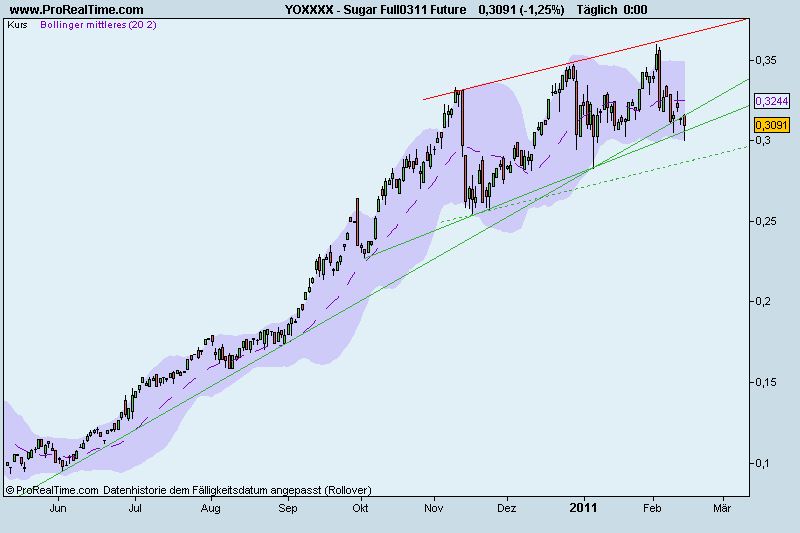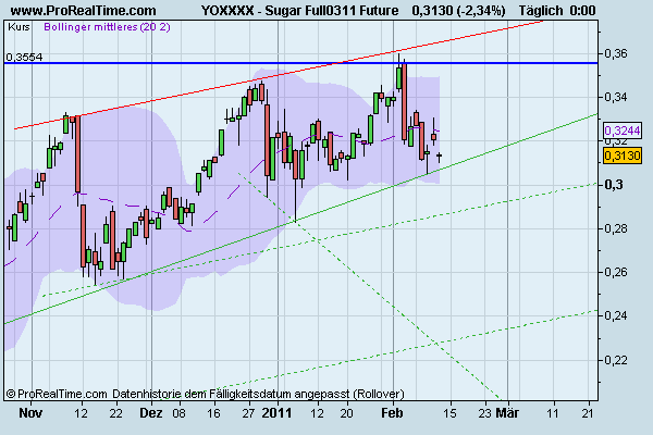 Sydney (BoerseGo.de) - Der Zuckerexport Australiens wird in der Erntesaison 2011/12 um ein Drittel unterhalb des normalen Niveaus erwartet, heißt es am Freitag von Exporteuren des Landes. "Im kommenden Jahr werden wir kaum mehr als zwei Millionen Tonnen exportieren können", sagt Alan Winney, von Queensland Sugar Ltd gegenüber Reuters. Schon im laufenden Jahr werden es lediglich 2,2 bis 2,3 Millionen Tonnen sein. Normalerweise exportieren wir drei Millionen Tonnen, ergänzte er. Queensland Sugar steht für 90 Prozent der australischen Exporte. Australien ist immerhin die drittwichtigste Exportnation. Nach Einschätzung des Unternehmens wird es bis zur Erntesaison 2012/2013 dauern, bis sich die Plantagen von den Zerstörungen durch den Zyklon Yasi erholt haben.