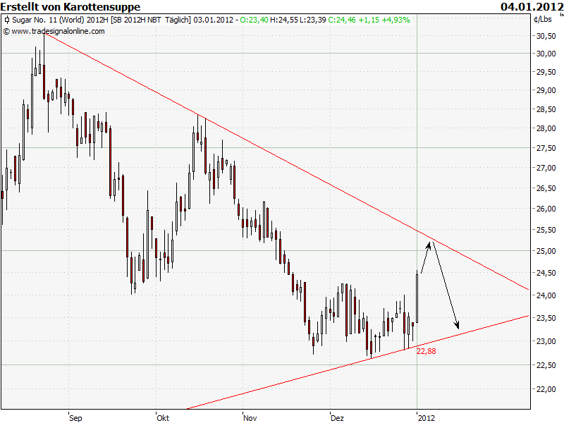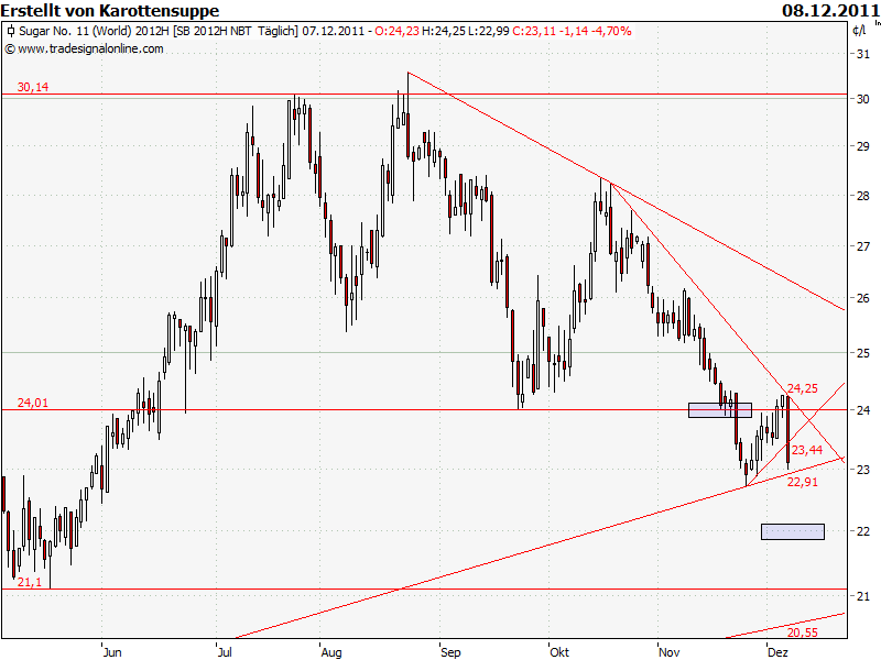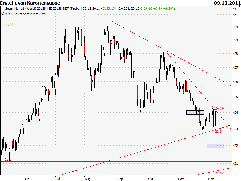 Was meinst du, wann das Ziel von 22 im Zucker erreicht wird? Würdest du bei 22 long gehen? Mir scheint, dass der Zuckerpreis auf diesem Niveau eine Unterstützung erreicht hat, von der aus steigende Kurse wieder zu sehen sein werden. Was meinst du dazu?