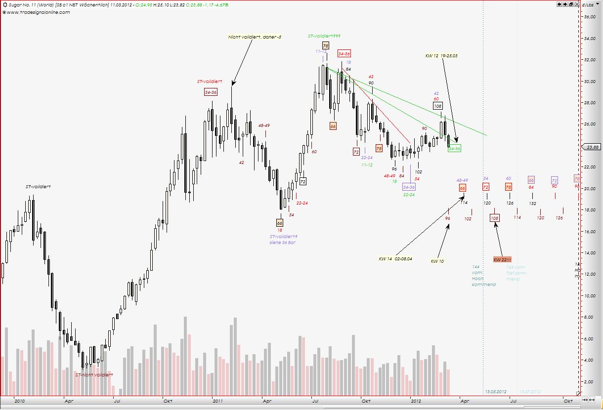 Stell dir vor, der Zuckerpreis würde nur steigen. Man würde sich ärgern, dass man nicht gekauft hat, als der Preis noch relativ niedrig war. Man würde sich wünschen, dass der Preis wieder zurückkommt, damit man billig kaufen kann. Momentan bietet der Zuckerpreis wieder gute Einstiegschancen. Sicherlich können in einigen Tagen oder Wochen noch besere Einstiegschancen kommen, aber das sind Einstiegschancen, die aber wenige wirklich nutzen, weil keiner weiss ob der Preis wieder steigt. Die Geschichte des Zuckerpreises wiederholt sich ständig; entscheidend ist ein gutes Moneymanagement, entscheidend ist, dass man den fallenden Kursen entgegengeht und nicht den steigenden hinterherläuft. Wenn Zucker wirklich nach oben ausbricht, dann geht das dermaßen raketenartig, dass man sich wirklich wünscht, er würde wenigstens für ein paar Tage zurückkommen, damit man mitfliegt.