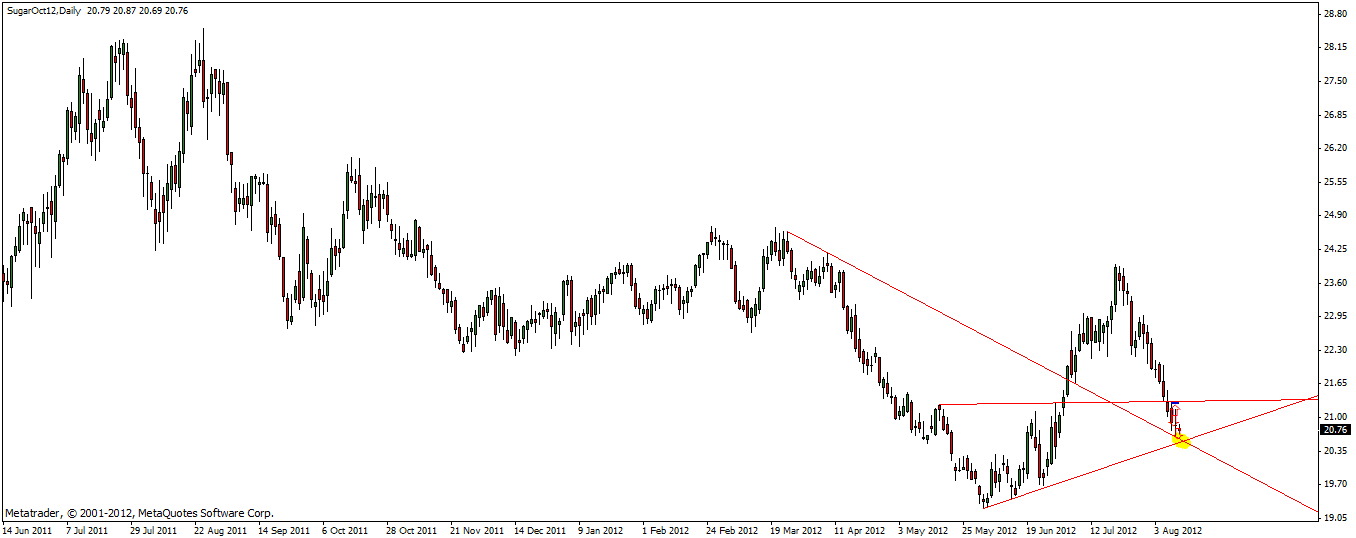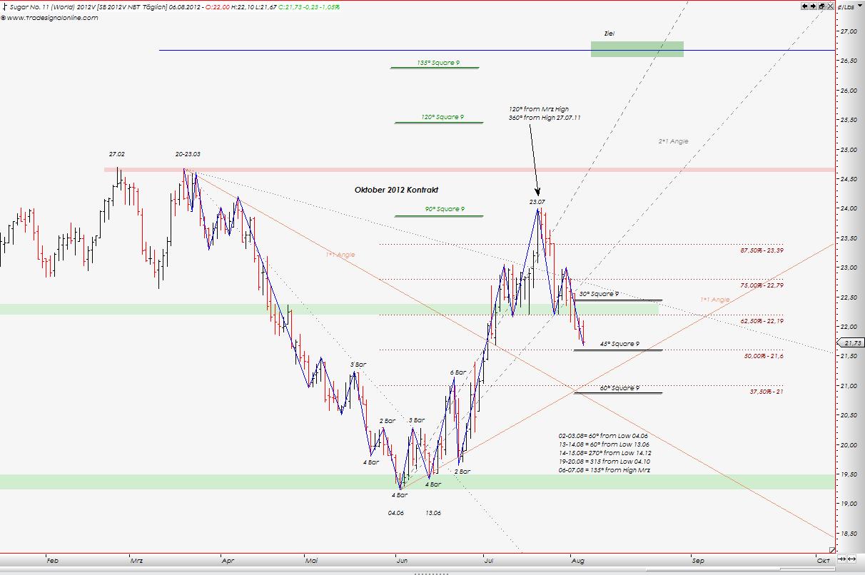 Für mich, als derjenigen, der Long gehen möchte, gilt jetzt die Parolle: warten und beobachten. Zucker, für gewöhnlich, bildet über mehrere Tage / Wochen, Boden aus und erst dann wird ein Trend gemacht, daher wird dieser Wert nicht weg laufen.