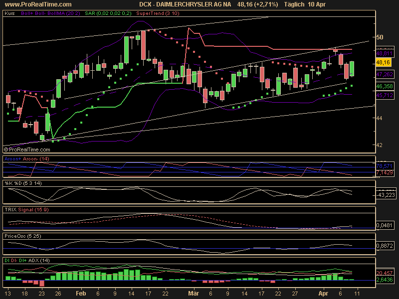 Nach Bekanntgabe der Zahlen sei der Titel gestern unter Druck geraten. Dies habe nach Ansicht der Wertpapierexperten hauptsächlich daran gelegen, dass die Marktteilnehmer insgeheim auf einen noch größeren Ertragsfortschritt bei Mercedes gehofft hätten. Hier würden die Analysten in den nächsten Quartalen mit einer Verbesserung der bereinigten Gewinnspanne rechnen. Auch bei Chrysler sollte der ausgewiesene Gewinnbeitrag den Tiefpunkt erreicht haben.