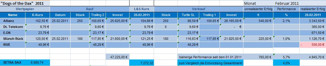 Am 24.02.2011 15:00:00 ist bei Allianz das Chartsignal neues 4-Wochen Tief aufgetreten – ein typisches short Signal. Es wurde generiert, weil der gestrige Allianz-Kurs kleiner als jeder andere Kurs in den zurückliegenden 4 Handelswochen war.