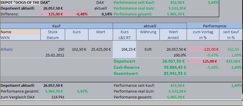 Allianz ist derzeit nicht wieder ins Depot aufgenommen. Es gibt noch keine klaren Anzeichen für einen Wiedereinstieg.