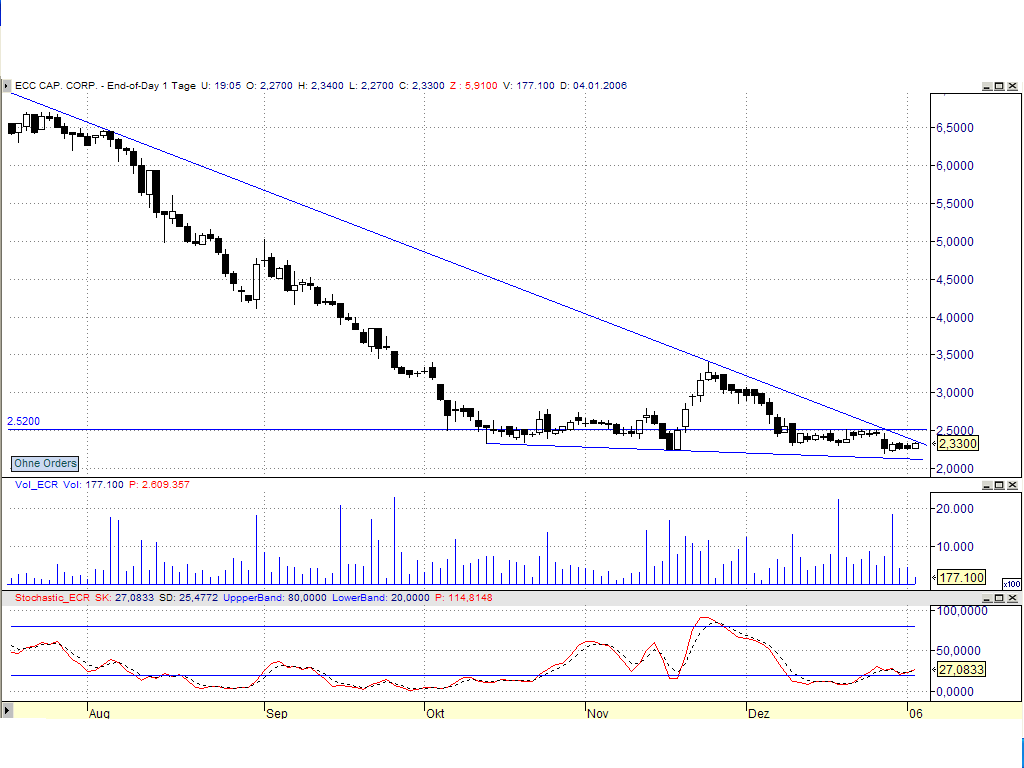 ECC Capital reported net profit for the three months ended September 30, 2005 of $24.4 million, or $0.24 per diluted share. For the nine months ended September 30, 2005, ECC Capital is reporting a loss of $12.2 million, or $0.15 per diluted share. The core net loss for the three and nine months ended September 30, 2005 was $7.2 million and $33.4 million, respectively, and $0.07 per diluted share and $0.40 per diluted share, respectively. A reconciliation of net loss reported under generally accepted accounting principles (GAAP) to core results is presented with this press release