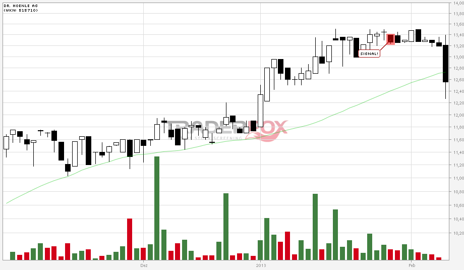 Charttechnische Einschätzung: Sehr schwungvoll begann für die Dr. Hönle-Aktie das neue Jahr. In der ersten Handelswoche erfolgte ein dynamischer Ausbruch über den Widerstand von 12,30 Euro. Das hatte sich in den letzten Wochen schon angedeutet. Seit Mitte Oktober wurde die Handelsspanne unterhalb der Marke immer enger und eine "Entladung" war nur eine Frage der Zeit. Mit diesem Ausbruch dürfte das erste der von Pröbstl genannten Kursziele jetzt ziemlich direkt angelaufen werden. Genau bei 13,70 Euro befindet sich mit dem 2011er-Hoch der nächste Horizontalwiderstand. Ein Anstieg über 13,70 Euro würde für den Weg freimachen für eine mittelfristige Bewegung in Richtung 18,00 Euro. Mögliche Rücksetzer, die oberhalb von 11,80 Euro Halt finden, wären momentan als Kaufchancen zu verstehen.