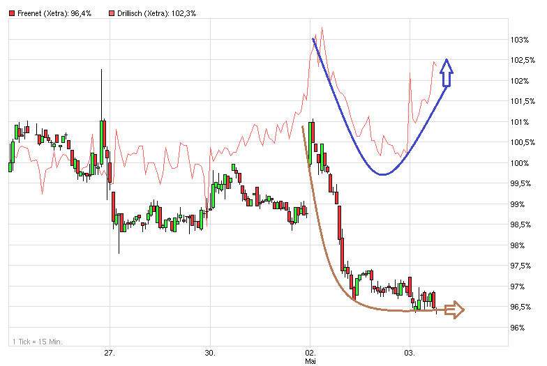 Das erhöhte Handelsvolumen bei Drillisch setzte ja ein bevor der deutliche Kursrutsch im DAX von ca. 200 Punkten voll durchschlug. Es war also nicht nur eine reine Reaktion auf das Geschehen am Gesamtmarkt. Am Nachmittag hatte sich dann das Handelsvolumen bei Drillisch wieder "normalisiert". Von daher könnte es gut sein, daß damit dieser Verkäufer erstmal fertig ist. Wird man ja dann sehen, falls es nochmals in der kommenden Zeit in den Bereich 9,60+x gehen sollte. Das es eine gewisse Nervosität gibt vor den bald kommenden Q.1 Zahlen ist nicht ungewöhnlich, besonders wenn im Vorfeld schon seit längerem die Kurse anziehen und gewisse Dinge damit schon eingepreist wurden. Da wäre es schon gut, wenn es Drillisch geläge die Zahlen und Prognosen nochmal etwas anzuheben für 2012.