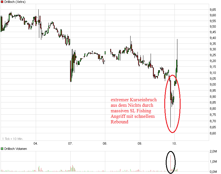 Also ich sehe das etwas differenzierter. Also ich habe auch kein Mitleid. Wollen diese Leute auch sicher nicht. Börse ist ein "Spiel" von Chance und Risiko. Da kann man nicht immer nur gewinnen. Aber ich verkneife mir auch ein hämisches "selber Schuld", weil ich verstehen kann, daß man wg. MM&RM seine Posis absichert (man denke z.B. an die Folgen der T-Klage letzten Herbst. Wer da rechtzeitig rauskam hatte später eher Mitleid mit denen die nicht schnell rauskamen) .Da haben viele Leute gestern in der Situation nicht aktiv verkauft, sondern wurden durch eine massive SL Fishing Attacke rausgetrieben. Die Region 8,8/8,9 ist nunmal eine wichtige Unterstützungszone. Von daher dürften da auch viele SL gelegen haben. Wenn jemand sich deutlich über 9€ fett mit Putten eingedeckt hat, dann in einer Phase wo die Käuferseite gerade auf den Händen sitzt (DAX ging unter 6400) gezielt eine überdimensionierte Verkauforder eingibt, dann sackt der Kurs eben schnell für einen kurzen Augenblick ein und wird duch die SL Lawinie verstärkt. Dann schnell die Short Posi verkaufen. Und kurze Zeit später geht der Kurs wieder hoch, weil zum einen Schnäppchenjäger zukaufen wie auch gewisse große Hände, die keine nachhaltig zu tiefen Kurse sehen wollen. Könnte also sein, daß heute auch einige Leute wieder zugekauft haben die gestern ungewollt rausgekegelt wurden. Bei kleinen Werten wie Drillisch oder anderen Kleinwerte im TecDax sind solche Abzock-Attacken halt mit nicht zu großem Aufwand durchführbar. Wer solchen Attacken entgehen will, der muß schon Blue Chips kaufen.