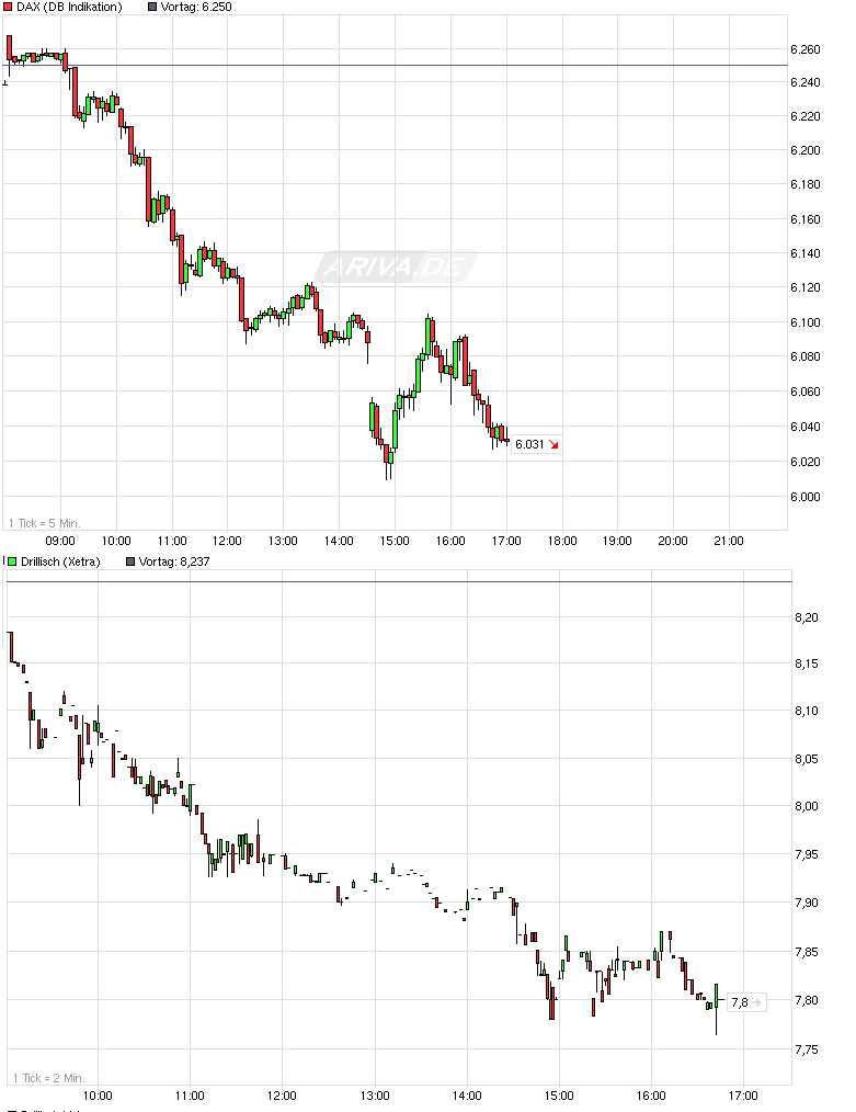 Nur die Ruhe, der Handelstag ist noch nicht vorbei und die 9 noch möglich ;) Also ich glaube keiner hätte was dagegen gehabt, wenn 9€ heute auf dem Kurszettel stünden. Aber so bekommt man stattdessen ein reinigendes Gewitter geboten. Für die Leute die relativ hohe Cashbestände gegenwärtig (wieder) haben also ein Zeit wo es einiges im Sonderangebot gibt. Man muß halt nur genau schauen, welche soliden und nicht wirkich übermäßig konjunktursensible Titel da in der Hysterie mitverprügelt werden. Das muß heute nicht der finale Sell Off sein. Dafür fehlt bislang ein überzeugender Rebound und zum anderen hat man schwere Wirkungstreffer im Chartbild bekommen. Aber selektiv bei dem ein oder anderen Wert schonmal etwas wieder zukaufen dürfte auf etwas längere Sicht betrachtet kein großer Fehler sein, auch wenn man den tiefsten Punkt beim Kauf so gut wie nie erwischt.. Man sieht ja bei Freenet schon wie sich dieser Wert gut heute hält. Meistens hat sich in den letzten Monaten Drillisch und Freenet gleich geschlagen. Ich hoffe Drillisch geht bald wieder in den Gleichschnittmodus mit FNT über und wird wieder stabiler. Auf Sicht von einigen Monaten ist man zumindest wieder auf Gleichstand nach dem Drillisch-Absacker von heute