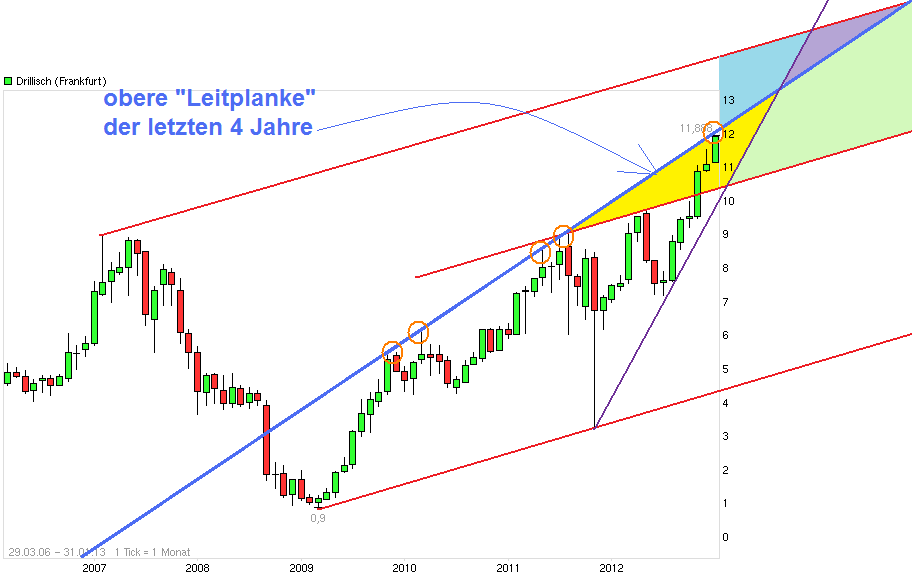 Die Gesellschaft ist bestens bei Kasse. Schon nach drei Quartalen des Geschäftsjahrs 2012 – das Konzernergebnis schnellte um 23 Prozent auf 34,5 Millionen Euro nach oben – kündigte der Vorstand an, mindestens die Vorjahresdividende von 70 Cent wieder zu zahlen. Es dürfte bei der dynamischen Gewinnentwicklung eher etwas mehr werden. Zudem will Drillisch zehn Prozent seiner Aktien zurückkaufen. Der Kurs zog so zuletzt schon merklich an. Trotzdem ist die Aktie mit einem Kurs-Gewinn-Verhältnis (KGV) von zwölf keineswegs überteuert – und bietet weiter mehr als sechs Prozent Dividendenrendite.