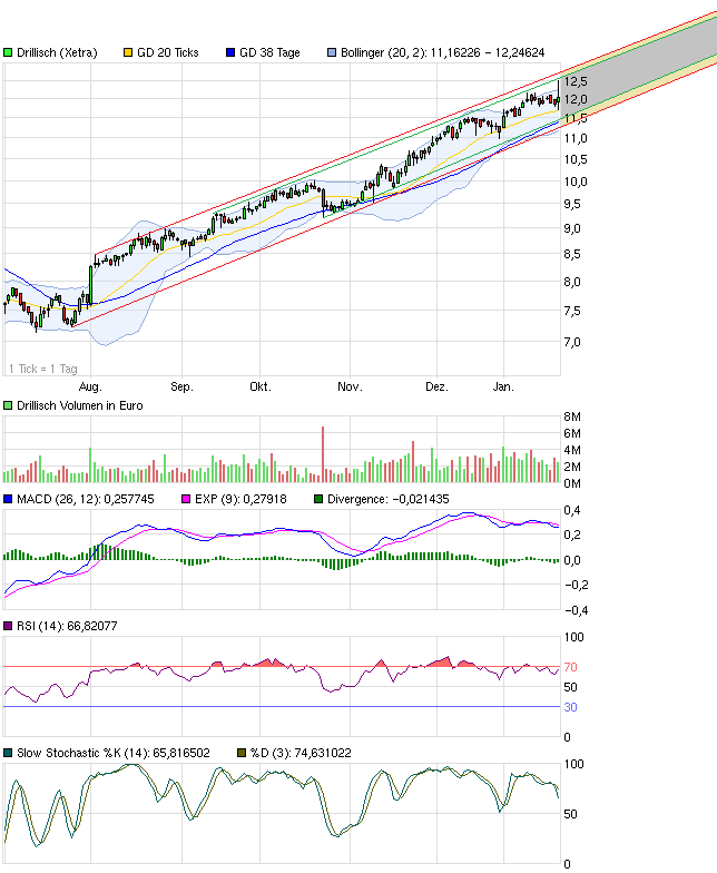 crunch time: 21.01.13 11:31 #35855 => .http://www.ariva.de/forum/Drillisch-555-Anstieg-sind-locker-moeglich-357402?page=1434#jumppos35855 => "...Diese seitwärts/leicht abwärts orientierte Rumeierei mit den roten Tageskerzen erinnert etwas an die Zeit von Mitte Dezember. Vielleicht braucht man wie damals am Ende auch nochmal ein oder zwei Tage wo man auch etwas tiefer absackt ( z.B. jetzt bis ca. 11,50/60), um dann wieder Fahrt aufzunehmen. Um diese aktuelle Seitwärtsperiode mal wieder abzuschließen wäre ein grüner Ausbruchtag ideal der auf SK klar über 12,20 ginge.