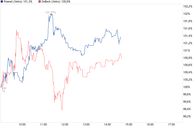 toitoi #38445 Zum richtigen Zeitpunkt umgeschichtet. Hätte ich mal komplett umgeschichtet und nicht nur 75%:-( Drillisch gleich im Minus und Freenet stark im Plus.- toitoi #38448 Sieht nicht gut aus. ... Habe den restbestand von 25% auch noch verkauft.