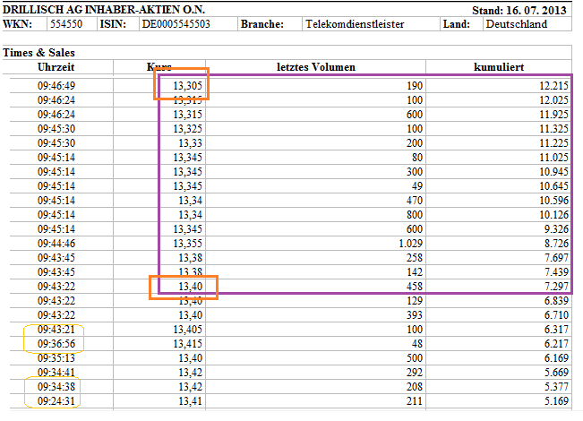 bis 13:00 erst knapp über 50.000 Stk. gehandelt auf Xetra. Vor einigen Wochen hat man sowas noch pro Stunde umgesetzt ;) Ist halt Ferienzeit. Da ist ohne echte News eben nicht viel los. Da kann dafür aber auch schon eine kleine Menge genügen, um den Kurs schnell mal um 10 oder 15 Cent fallen zu lassen bei dem ausgedünnten Orderbuch. Heute früh gab es z.B. mehrfach Phasen wo 6-10 Minuten keine einzige Aktie umgesetzt wurde. Und dann haben kurz vor 10:00 schon ein paar 1000 Stk. genügt um den Kurs von 13,40 auf 13,30 zu drücken. Von daher sehe ich den Rückgang eher als eine Art sommerlicher Käuferlustlosigkeit an und sehe momentan keine Flucht von größeren Investoren. Warteschleife vor den Zahlen halt. Wird einfach wieder Zeit, daß Drillisch etwas zum Geschäftsverlauf äußert und zu einem eventuellen neuen ARP. Seit der HV gab es ja nichts nennenswertes zu hören von Drillisch. Die Q.1 Zahlen waren bei bestimmten Punkten eher durchwachsen bzw. ausbaufähig. Von daher bleibt zu hoffen im Q.2 war wieder mehr Dampf im Kessel, damit man weiter hoffen kann bei der 13er Prognose ( Gewinn vor Steuern zwischen 67 und 70 Millionen Euro) das obere Ende zu erreichen.