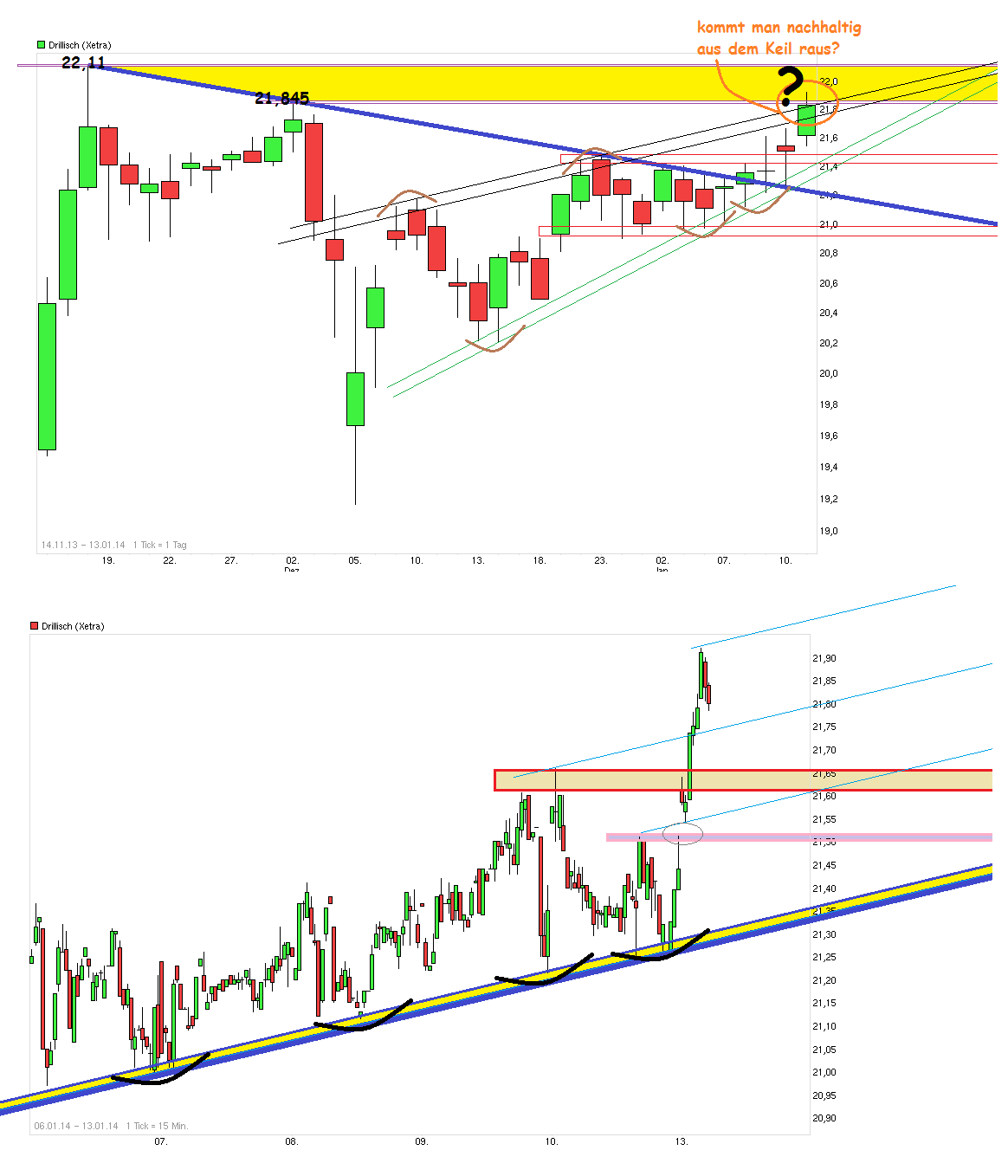 Wie die Tage schon geschrieben, die Anzeichen waren eigentlich untrüglich. Trotzdem fänd ichs netter bzw. nachhaltiger, wir prallen erst ein paar mal hier ab und gehen die Woche auf dem Niveau quer. Dann nächste Woche durch die 22 und im Februar ein langer Kampf um die Höchstmarke und dann 22.50.
