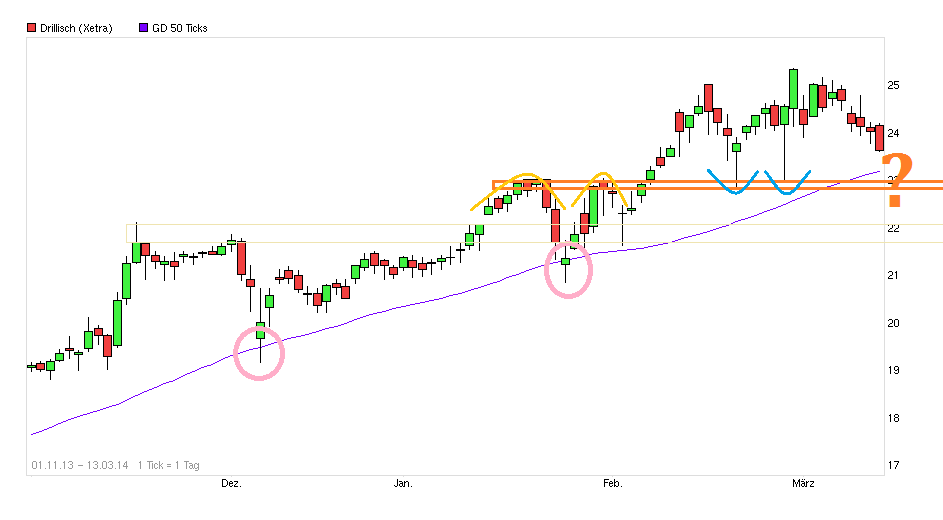 Glauben ist nicht wissen. Möglich ist da vieles an der Börse. Daher nie verkehrt auch mal präventiv Abstauber zu legen, auch wenn sie vielleicht nicht erreicht werden sollten. Lieber einmal zuviel so ein Limit vergeblich legen als sich später mal ärgern nicht den Ausreißer nach unten erwischt zu haben. Ein Abstauber-Limit knapp über 23 zu legen scheint nicht chancenlos, wenn irgendwann nochmal intraday irgendwas die Märkte übertrieben runterjagen würde. Wobei je knapper man es an die 23 setzt, desto enger wird es natürlich. 10 oder max. 20 Cent unter die SMA50 könnte man aber wagen. Die letzten SMA50 Berührungen gingen ja intraday auch etwas durch die Linie. Bis zur SMA200 im DAX wären es ja noch ca. 170 Punkte. Wenn morgen wieder vor dem WE so ein Pampersfreitag kommt wie letzen Freitag und man Richtung großen Verfall einige weitere hektische Ausschläge in die ein oder andere Richtung sehen sollte, dann könnte bei DRI auch nochmal die SMA50 auf den Prüfstand kommen. Von daher nie verkehrt : buy low , sell high