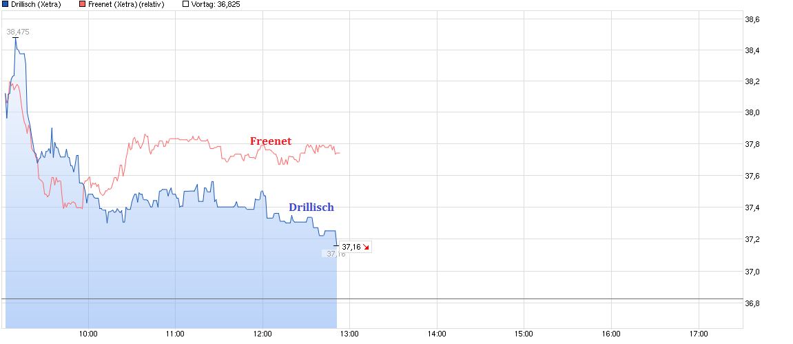 Schlechtes Wochenende gehabt oder woher diese Gehässigkeit? Also habe kein Problem damit, wenn du dich freust über steigende DRI-Kurse. Da freue ich mich auch für jeden mit der investiert ist. Aber sich zusätzlich parallel an fallenden FNT-Kursen ergötzen (= Depotpositionen anderer Ariva-User) finde ich dann schon etwas unangenehm vom Verhalten her. Man sollte das nicht so engstirnig als irgendein feindliches Duell ansehen, sondern weitsichtig erkennen, daß sowohl Freenet als auch Drillisch (und Telefonica Deutschland, UI, etc.) mittel- bis langfristig möglichst parallel verlaufende Kursrichtungen ausweisen sollten, da diese Player in der gleichen Branche tätig sind und nur eine allgemeine postive Betrachtung des Marktes gegenüber der Branche allen Aktien der Branchenplayer weiterhilft. Heute haben ein paar Scheucher von der Würfelgilde zu Handelsbeginn einige Passivdenker von der Kleingeld-Fraktion wuschig gemacht bei beiden Werten. Hat aber meist nur Halbwertzeiten von wenigen Stunden. Was wirklich interessant wird (neben dem natürlich wichtigen weiteren Verlauf des Gesamtmarktes), daß ist wenn diese Woche Deutsche Telekom und Telefonica Deutschland am Donnerstag vorläufige Zahlen vorlegen werden und FNT und DRI vermutlich auch zeitnah ähnliches tun werden. Da kann man nur hoffen, daß sich daraus ein Gesamtbild für den deutschen Mobilfunkmarkt ergibt, der genug weitere Wachstumsperspektive für die Provider bieten wird. Und zwar möglichst für alle Player. Mir ist am liebsten alle Telko-Werte sind fest und der Gesamtmarkt steigt ebenfalls anstatt unnötiges Gebashe gegen andere Telko-Werte noch zu betreiben.