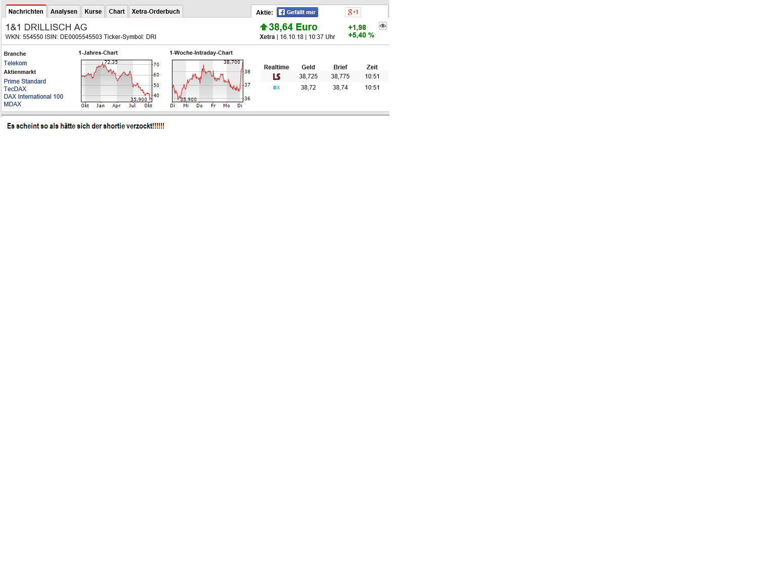 Bei Freenet läufts auch nicht gut, aber da ist der CEO wenigstens in den Medien und handelt bezüglich der Ceconomy-Beteiligung. Wann war das letzte Mal, dass sich RD bezüglich Rocket Internet oder Tele Columbus geäußert hat? Freenet schaffts das Management sofort auszutauschen und RD chillt mit seinen 30% Anteil bei Tele Columbus und interessiert sich nen feuchten Dreck, was mit der Beteiligung passiert.