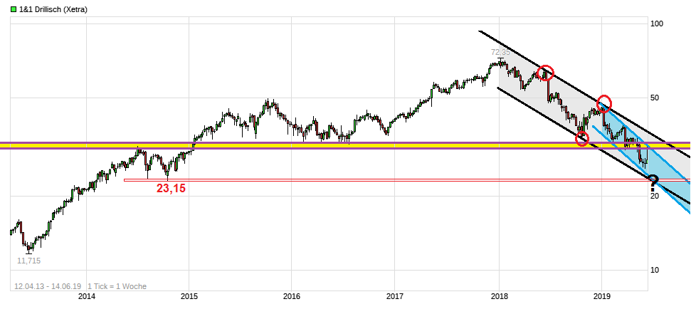 nun wieder läuft. Ist schließlich die Hauptrichtung in der der man seit Monaten läuft und da hat sich an den Gründen dafür ja nichts geändert ( schwache Q.1 Zahlen, die Markterwartungen verfehlt haben + Angst diese fundamentale Schwäche könnte sich auch mit den Hj1. Zahlen weiter bestätigen + der Mega-Bleikugel 5G Netz + Dividendendürre auf unabsehbare Zeit) . In den letzten Wochen war der einzige winzige Hoffnungsschimmer, daß der seit Jahren bei seinen Investments glücklose Dommermuth vielleicht doch noch diesen vermögensvernichtenden 5G-Egotrip und das AbenTEUER Netzaufbau ( in der Summe geht es um Investitonen im zweistelligen Mrd. Bereich für Drillisch, d.h. die Auktionskosten sind der kleinste Teil des Ganzen) abbricht. Die Hoffnung ist vorbei. So wird man nun auf Jahre hinaus maue Dividenden haben in Kombination mit sehr hohem Investitionsrisiko ohne dabei bislang klar erkennbarem Amortisationszeitraum. Für Privatanwender ( quasi die Kunden die bei 1&1/DRI unter Vertrag stehen) wird 5G auf Jahre hinaus keine echte Rolle spielen.