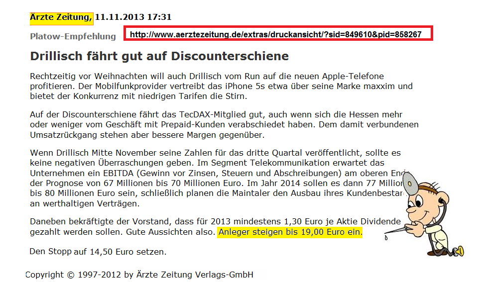 Ja, sieht so aus als wollte da jemand heute vielleicht wieder an der 20 naschen. Allerdings hat man ja gestern gesehen wie dann aber auch schnell wieder Gewinnmitnahmen einsetzten an der 20. Man ist halt etwas nervös. Wird langsam Zeit für die Zahlen, damit endlich klarer wird, ob genug neuer Treibstoff da ist um die 20 nachhaltig zu nehmen oder nicht. Angesichts des Megaanstiegs des Kurses seit Mitte August dürften die Erwartungen ja nicht gerade niedrig sein. Von daher wäre z.B. eine Prognoseanhebung für das 13er EBITDA schon hilfreich.
