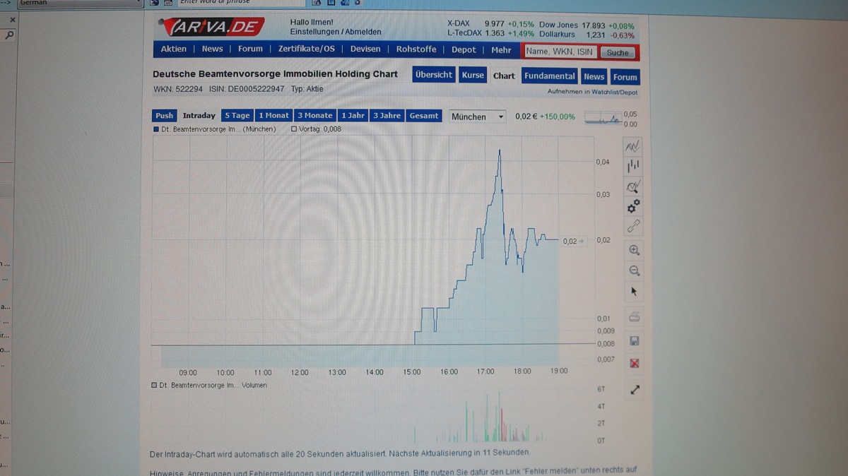 | 9 | 1.867 | Dt. Beamtenvorsorge Im. Holding AG vor Sanierung! | Rudini | Rudini | 24.04.21 23:47 | |