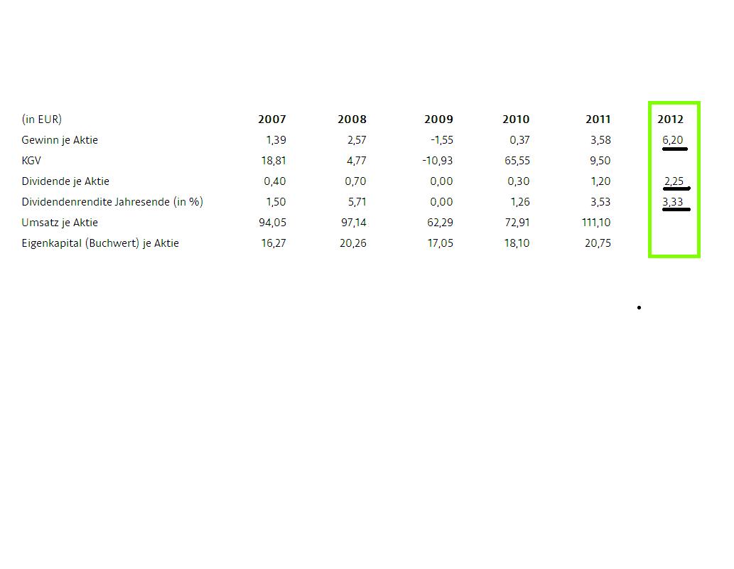 Dürr legte an einem Tag um über sieben Prozent zu. Einzige Nachricht zum Unternehmen: eine Analystenstudie mit neuem Kursziel. Das erinnert ein wenig an den Neuen Markt. Unterschied: Viele Aktien sind heute moderat bewertet. Das KGV von Dürr liegt auf Basis der Analystenschätzungen für 2013 bei knapp zwölf.