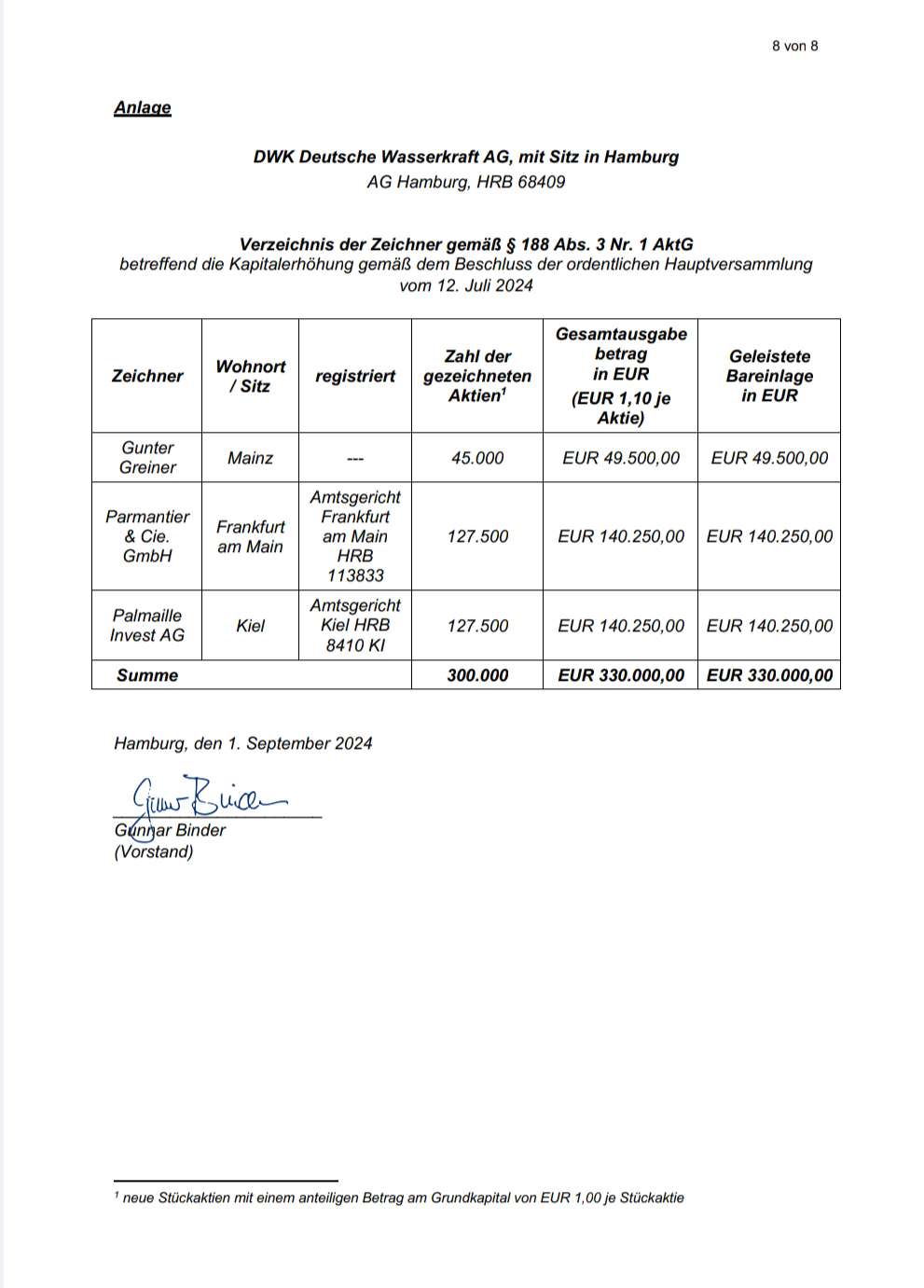 Kapitalerhöhung gezeichnet - die Zeichner sind im Handelsregister öffentlich einsehbar, schließlich handelt es sich um ein öffentliches Register. Ich habe diese noch einmal als Screenshot beigefügt - alle Zeichner haben EUR 1,10 je Aktie gezahlt - so wie der Vorstand es mit Genehmigung des Aufsichtsrats beschlossen hat.