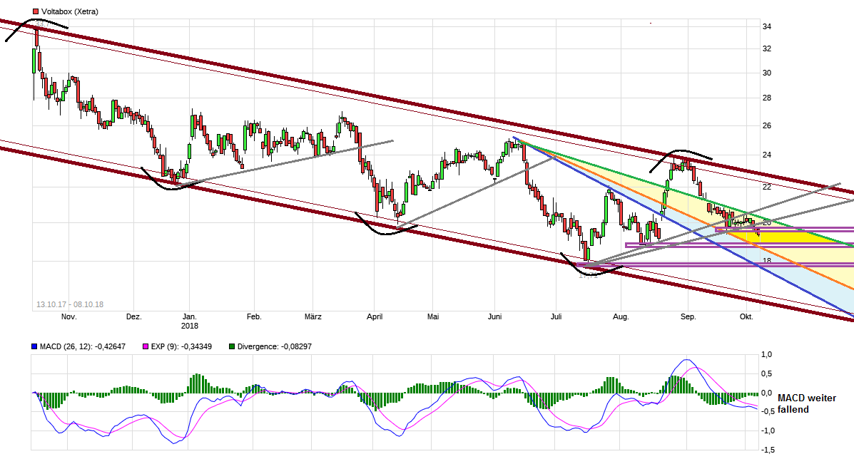 bis man wieder an der Unterseite des schwarzen Abwärtrendkanals angekommen ist (wobei es immer etwas schwieriger ist Aktien charttechnisch einzuordnen, wenn diese noch nicht solange überhaupt börsennotiert sind und daher langjährige große Orientierungsmarken/-linien/-durchschnitte eher noch Mangelware sind). Jetzt dürfte es darauf ankommen, ob es genug stützende Hände bzw. Käufer gibt, die an dieser unteren Schwelle wieder kaufen, da ein Break der unteren Kanalbegrenzung wohl direkt wieder Anschlußverkäufe auslösen könnte (was vielleicht den LV nicht unrecht wäre, falls diese nicht jetzt selber schon covern, weil ihnen der Gewinn schon reicht und der Spatz in der Hand auch schon sehr fett ausschaut). Ist natürlich in so einem Marktumfeld nicht einfach Käufer zu finden. Von daher also auch DAX&Co. weiter im Auge behalten und wenn, dann eher mit kleinere Teilpositionen erstmal reingehen anstatt direkt wieder mit großen neuen Positionen, um dann doch auf dem falschen Fuß erwischt zu werden. Dann lieber stufenartig kaufen, wenn gewisse Marken immer wieder zurückerobert werden. Man muß nicht immer genau das Tief erwischen. Wichtiger ist die richtige Trendbewegungsrichtung zu erwischen. Und da ist eben aktuell noch keine eindeutige Entscheidung gefallen solange man da unten rumturnt und der DAX noch wackelt. Hatte ja in #501 schon geschrieben, daß gerade solche Small Caps mit geringem Freefloat, die von diversen Börsenmedien deutlich hochgepusht wurden (d.h. viele "schwache Hände" dort zugegriffen haben dürften) gegenwärtig sehr schnell auch rückartig nach unten fallen können, da dort die Nachfrageseite schnell austrocknet und dann schon geringe Mengen die jemand unlimitiert abwirft großen Druck auslöst (was sicher auch die LV in der letzten Zeit schon genutzt haben dürften). Auch wären z.B. Abgaben von Wikifolios denkbar. Noch fehlen aber zumindest "Bad News" von Voltabox selber. Von daher ist hier viel Bewegung gesamtmarktinduziert und der allgemeinen Schwäche von Smallcaps geschuldet. Wobei man natürlich immer im Auge haben muß, wie sie Lage sich bei den Branchen/Firmen entwicklelt wo die Großkunden von Volatbox sind. Sollte sich bei denen die Lage eintrüben bzw. auch die Zukunftsaussichten schlechter werden, dann könnten auch die Absatzprognosen von Volatabox negativ beeinflußt werden bzw. die Investitonsbudgets der Kunden sinken. Da Voltabox sehr große Gelder in die Hand genommen hat, um die Kapazitäten sehr deutlich auszubauen, wäre es natürlich nicht schön, wenn diese anschließend künftig weniger ausgelastet würden als bei der Planung angedacht. Da darf bei derartig stark fixkostenlastigen Firmen der Grad der Auslastung nicht zu weit zurückkommen, wenn man den Breakeven nicht unterschreiten will, kann man nur hoffen die jüngste Meldungen über Abschwächung der Weltwirtschaft durch Trumps Zollkrieg schlägt nicht zu sehr zu Buche in 2019ff. Wobei solche Aussagen wie hier unten schon Sorgenfalten machen (neben der Problematik, daß die schnell steigenden Zinsen (T-Bonds >3,2%) zunehmend wieder ganz allgemein Konkurrenz für Aktieninvestments erzeugt)