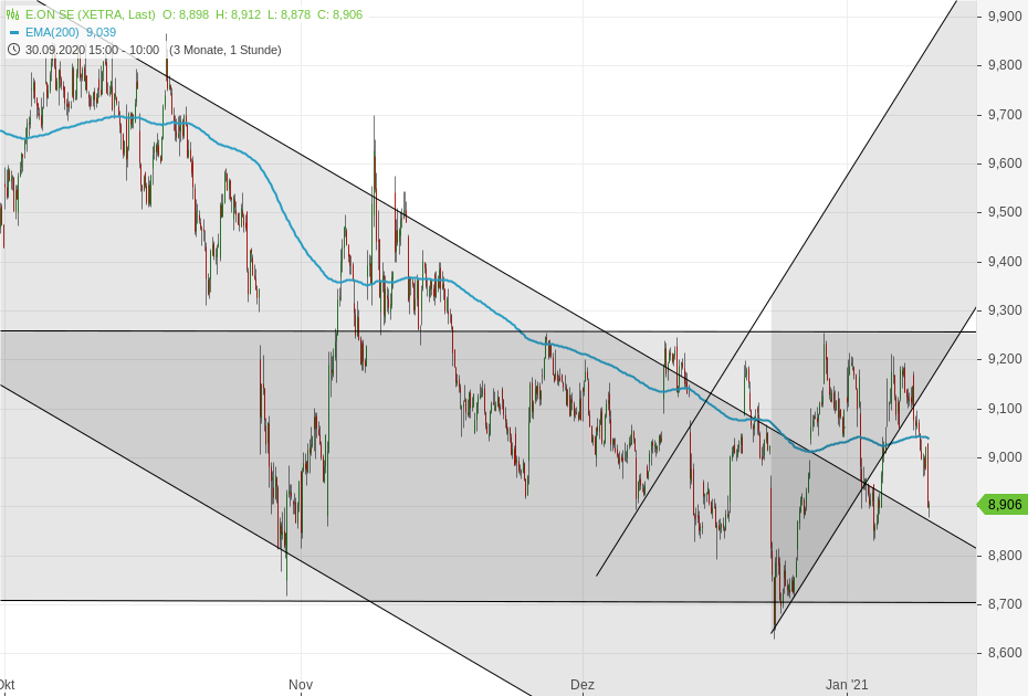 E.ON muss die Netze natürlich stetig instand halten und sicher auch hier und da ausbauen, doch das Gewinn-Potential hängt dabei sehr stark von der Kommission ab, die entscheiden wird, wie viel "Zoll" sich E.ON vom Durchfluss ihrer Netze genehmigen darf. Das übrige (sicher nicht unerhebliche) Potential liegt in Einsparungen (vor allem in GB) und Synergie-Effekte mit dem innogy-Teil. Der Markt schätzt diese Effekte insgesamt offenbar als sehr viel geringer ein als die bei RWE. Ich selbst hoffe, dass der schlaue Markt sich da bislang einfach ein wenig verschätzt hat und es möglicherweise sogar demnächst eine positive Überraschung geben könnte. Aber der Kurs bei E.ON ist mir persönlich relativ egal. Ich wünsche mir einfach eine stabile Dividende und werde diese unter 10€ fleißig reinvestieren.