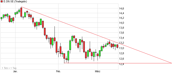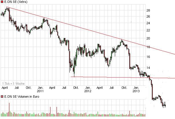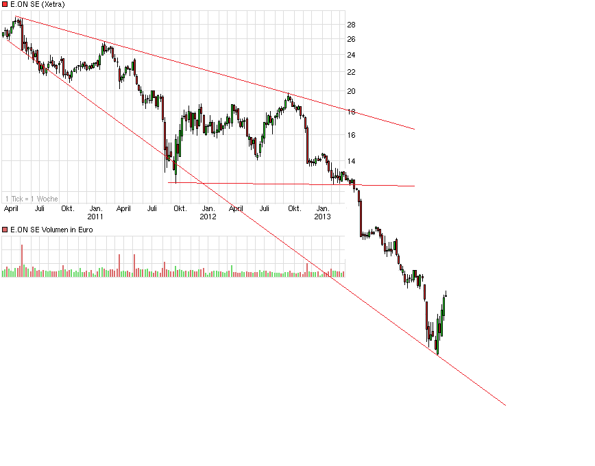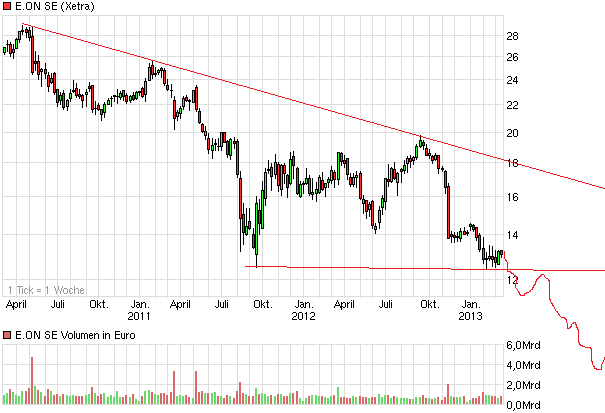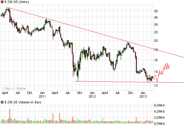 ist Charttechnik und Prognose sehr schwierig...24990 liegt da meiner Meinung richtig. Es hängt recht viel von der Regierung ab....die bestimmt den Kurs und leider nicht zwangsläufig das Management von E.ON...denke aber auch, dass wir mittlerweile recht weit unten angelangt sind. Ich setze auf E.ON....ist in meinem Depot das Schwergewicht.... Bin seit 13.80 dabei.....