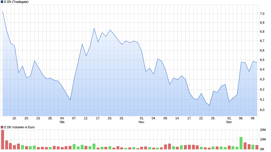 Ich glaube fest daran, das e.on ein value titel ist. Was der kurs angeht, das ist IST-Zustand und für weitere entwicklung des kurses ist nicht relevant. Ein Value bedeutet nicht gleich steigende kurse. Step by step kaufen und jahrelang halten, ist die beste investitionsstrategie. Zocken kann man woanders wo die kurse künstlich 10 und mehr prozent aufwärts steigend. das ist illusion womit insbesondere naive kleine anleger viel geld verlieren.