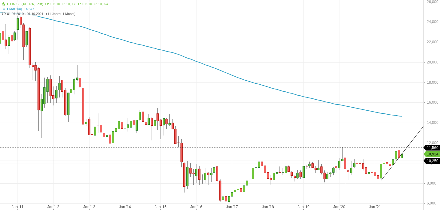 am Donnerstag wurde die 100GD bei 10,48€ im Xetra getestet, die Aktie war an diesem Tag überverkauft so kam es am Freitag zu einer Erholung. Beim aktuellen Börsenumfeld kann ich es mir nicht vorstellen, dass es jetzt schon wieder weiter nach oben dreht. Das Chartbild zeigt eindeutig nach unten, mM. nach wird die 200GD (9,85€) ebenfalls getestet werden. Wie weit diese unterschritten wird werden wir sehen, danach werden die GDs wieder von unten angegriffen und es zu einer Erholung des Kurses kommen. Jetzt gilt es das Pulver trocken zu halten um im richtigen Moment zugreifen zu können. Kurse unter der 200GD sind Kaufkurse, vorsichtige Anleger kaufen erst wieder wenn diese von unten gebrochen wird. Wer seine Aktien nicht verkauft sollte in den nächsten Monaten den EOn Kurs nicht verfolgen und in Urlaub gehen , segeln, golfen oder sich sonstigerweise erholen. Der "alte Kosto" sagte in die Apotheke gehen und Schlaftabletten kaufen.