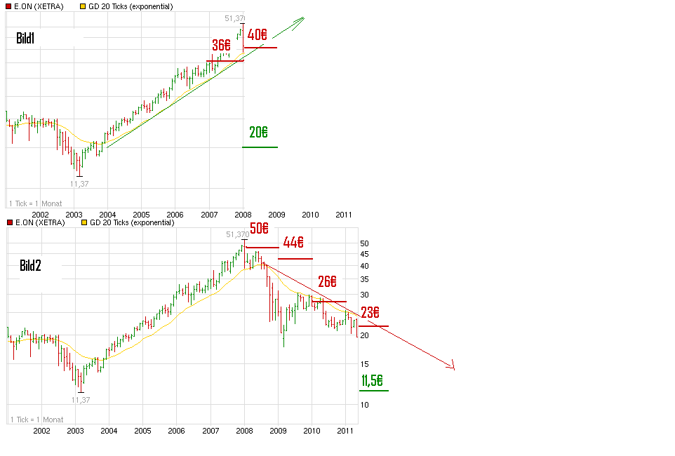 Du hast Recht mit deiner Bewertung zu EON. Ich sehe es genauso. Aber aufgrund des aktuellen Trubels denke ich die Aktie wird weiter fallen. Geht die Aktie in den Aufwärtstrend zurück steig ich wieder ein. Ansonsten schlag ich bei 17 € wieder zu.