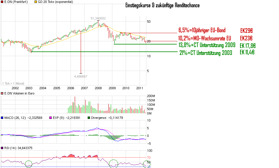 EON hat ein Eigenkapital von 45 Mrd EURO. Wenn der Laden heute geschlossen werden würde. Dies würde einem Kurs von 22,50 € p. Aktie entsprechen.