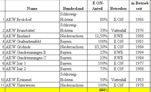 wenn man über die Anteile rechnet kommt man auf 6,2 AKW (6 eigene 100 %, 5 über diverse Beteiligungen)