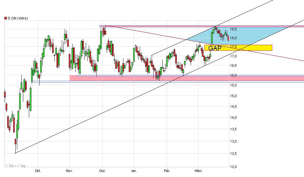 Eon ist meines Erachtens keine Aktie die man heute kauft um auf einen kurzfristigen Gewinn zu spekulieren. Also gebe ich der Sache einfach Zeit.