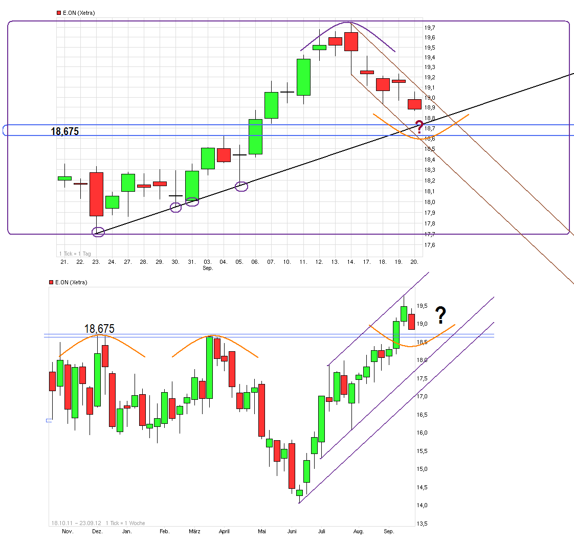 Hochspannend sind die Energiekonzerne. Besonders E.On hat nach dem Überwinden der Zone um 18 Euro die Wende geschafft. Unterm Strich dürfte in diesem Jahr ein Nettogewinn von 4 bis 4,5 Millionen Euro bleiben. Das macht die Aktie günstig – und eine gute Dividende ist auch in Sicht."