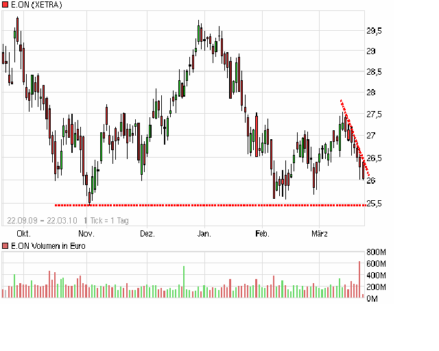 OK, E.ON investiert jetzt massiv in alternative Energie Erzeugung, vielleicht mehr als viele andere Versorger, aber was rogers schon geschrieben hat, "hohe Schulden wegen verfehlter Einkaufspolitik in den letzten Jahren", damit meinte er, die haben sich einige Schrott Kraftwerke andrehen lassen zb Kohle Verbrennung, nur um in Europa Marktanteile zu gewinnen, das hätte man sich schenken können und hätte besser die Fühler nach Asien ausgestreckt!
