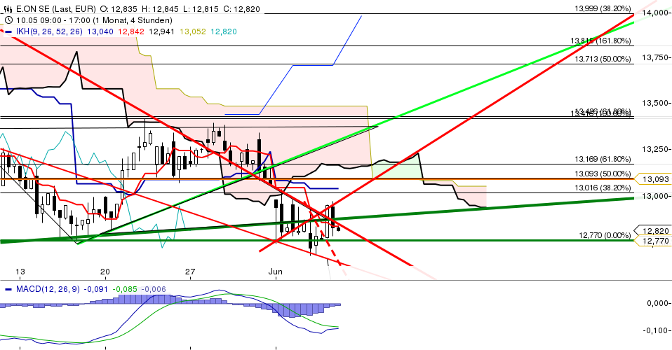 Meine Einschätzung ist (leider), dass die E.ON bis zur Bundestagswahl weder deutliche Sprünge nach oben und nach unten macht. Befürchte fast schon eine zweite Telekom. Generell bin ich von dem Investment zu 100 % überzeugt, aber wenn der Markt nunmal die Aktie als nicht attraktiv einstuft, kann man eben nichts machen. Auch werden positive News aus der Türkei/Brasilien noch auf sich warten lassen. Sehe persönlich das Kursziel bei ca. 17 Euro. (Ohne großartige Chartanalyse, was mir persönlich schon genügen würde :)