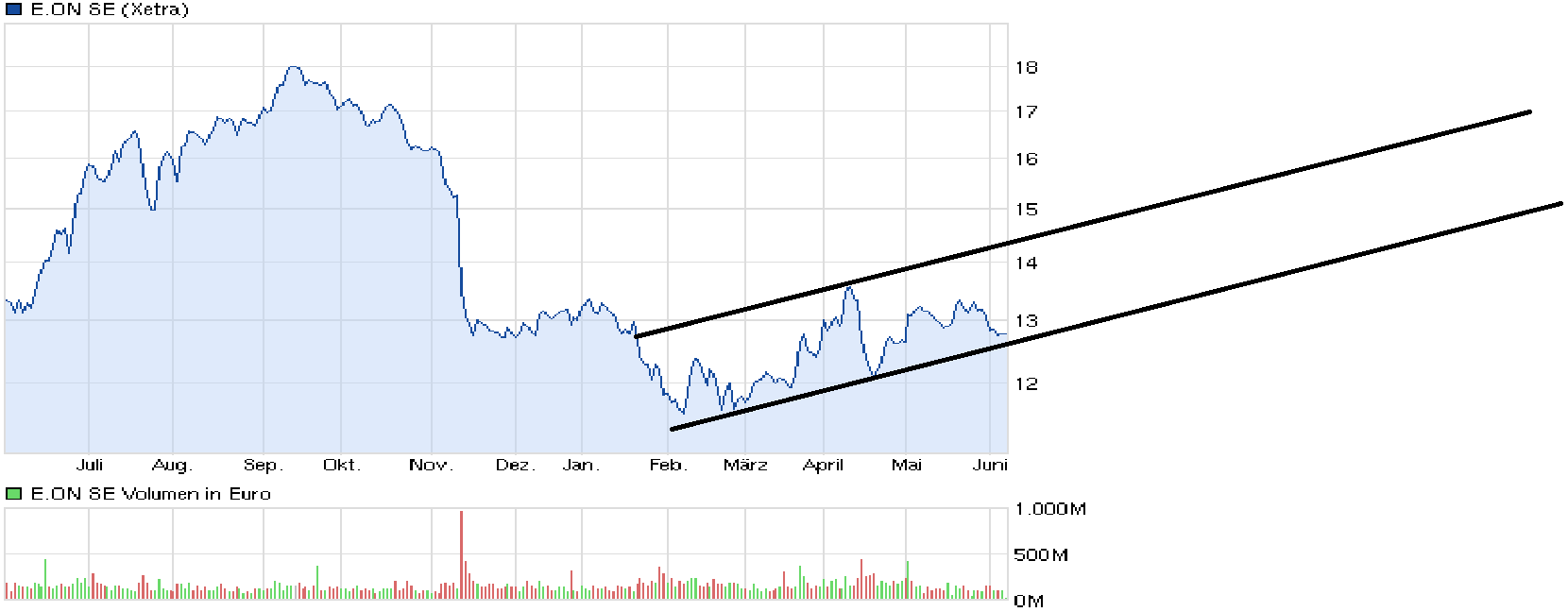 Zeit heilt alle Wunden, ich verstehe jeden der Frustiert ist, weil ich bei 20 € oder höher eingestiegen ist. Ein Artikel in Focus Money nennt Eon als großen Wertevernichter, da er zwar hohe Dividendenauszahlt, aber im Kurs so eingebrochen ist. Ich betrachte Eon immer noch als langfristige Anlage, was nicht bedeutet sich nicht mit Aus- / oder Einstieg zu beschäftigen. Ich glaube das Eon im Moment Unterbewertet ist und es auch noch mittelfristig so bleiben wird.